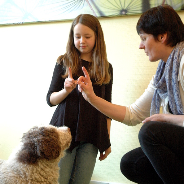 Außerdem haben wir seit längerer Zeit unseren spanischen Wasserhund SUNNY als Therapiehund.